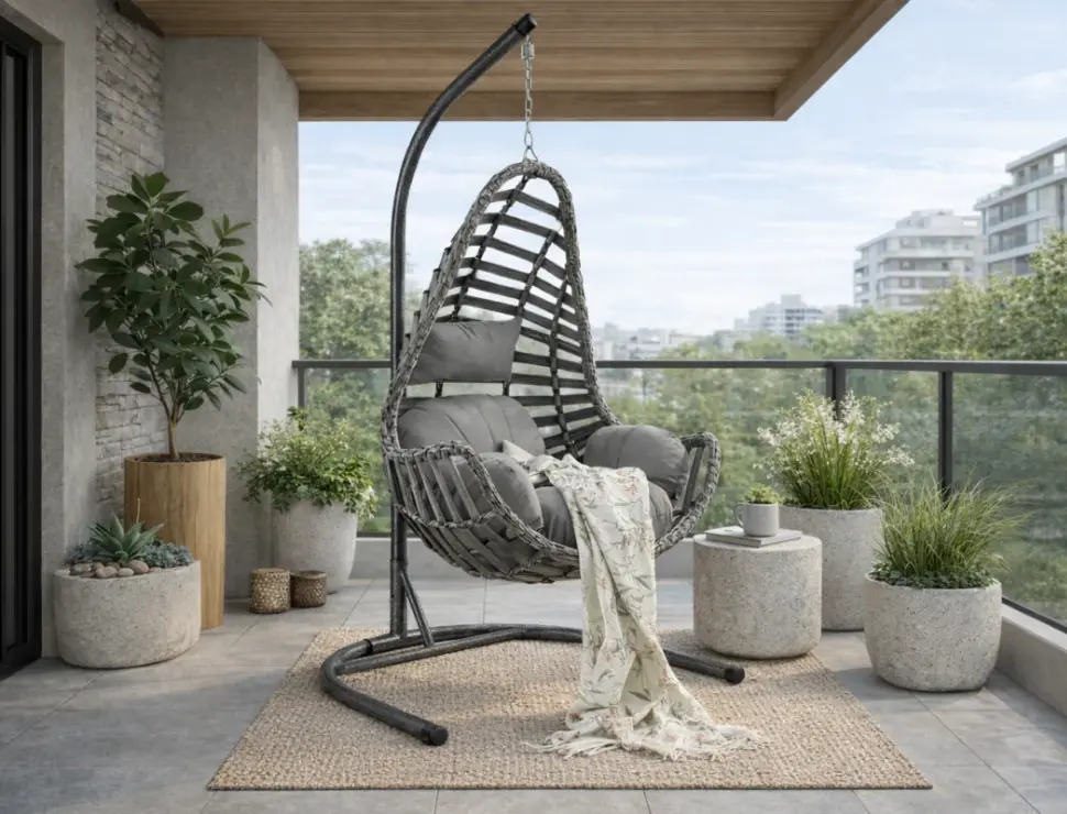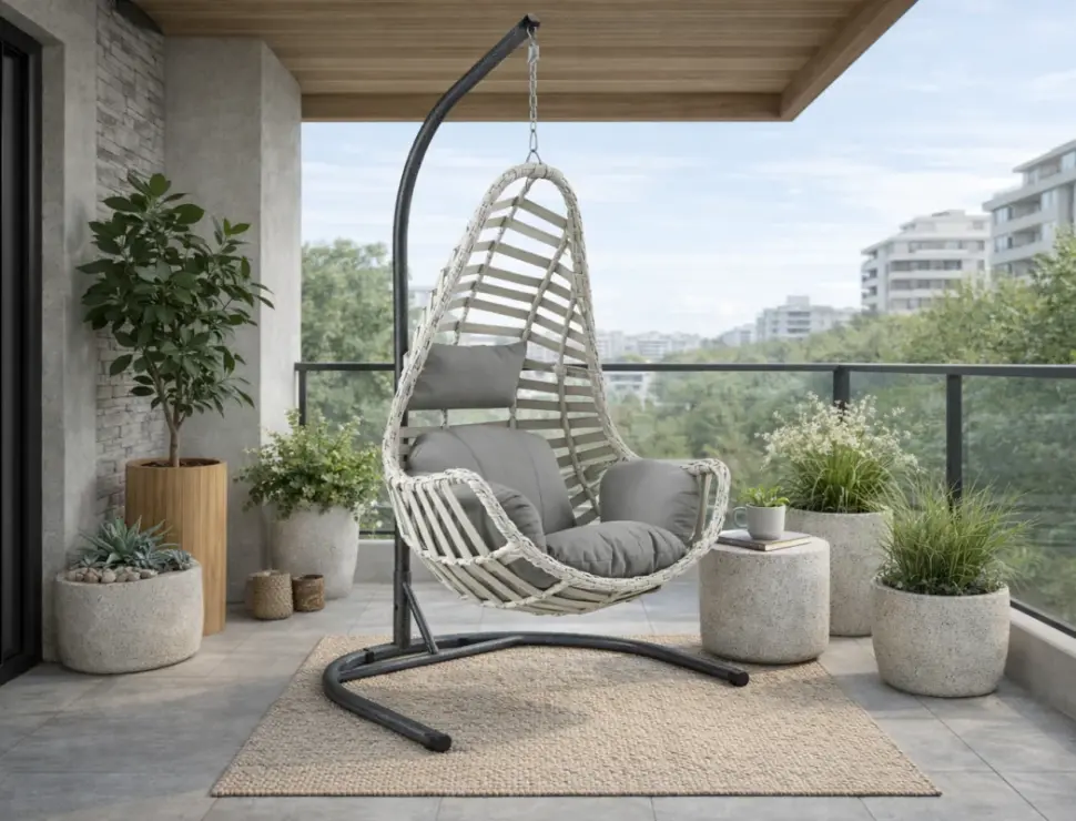 Malzeme: Rattan Gövde, Su Kaydırıcı Kumaş, Zincirli Çelik Askı Aparatı