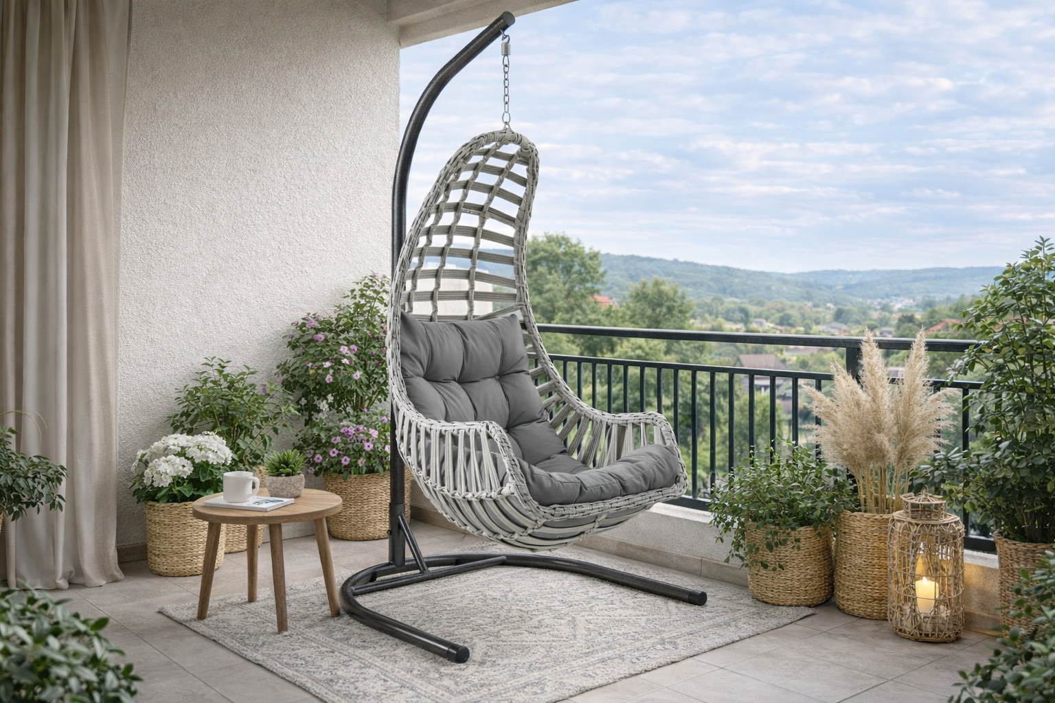 Malzeme: Rattan Gövde, Su Kaydırıcı Kumaş, Zincirli Çelik Askı Aparatı