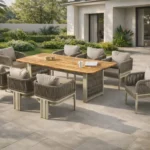 Alüminyum gövdesi sayesinde hafif ama sağlam bir yapıya sahip olan Elvira Oturma Grubu, dış mekân koşullarına karşı dayanıklıdır. Şık ip detaylı kolları modern bir estetik katarken, kalın dolgulu minderleri uzun oturumlarda üst düzey konfor sunar. Ahşap masa yüzeyi hem doğal bir görünüm hem de işlevsellik kazandırır. Balkon, bahçe ve teras gibi alanlarda keyifli ve estetik bir oturma alanı oluşturmak isteyenler için ideal tercihtir.